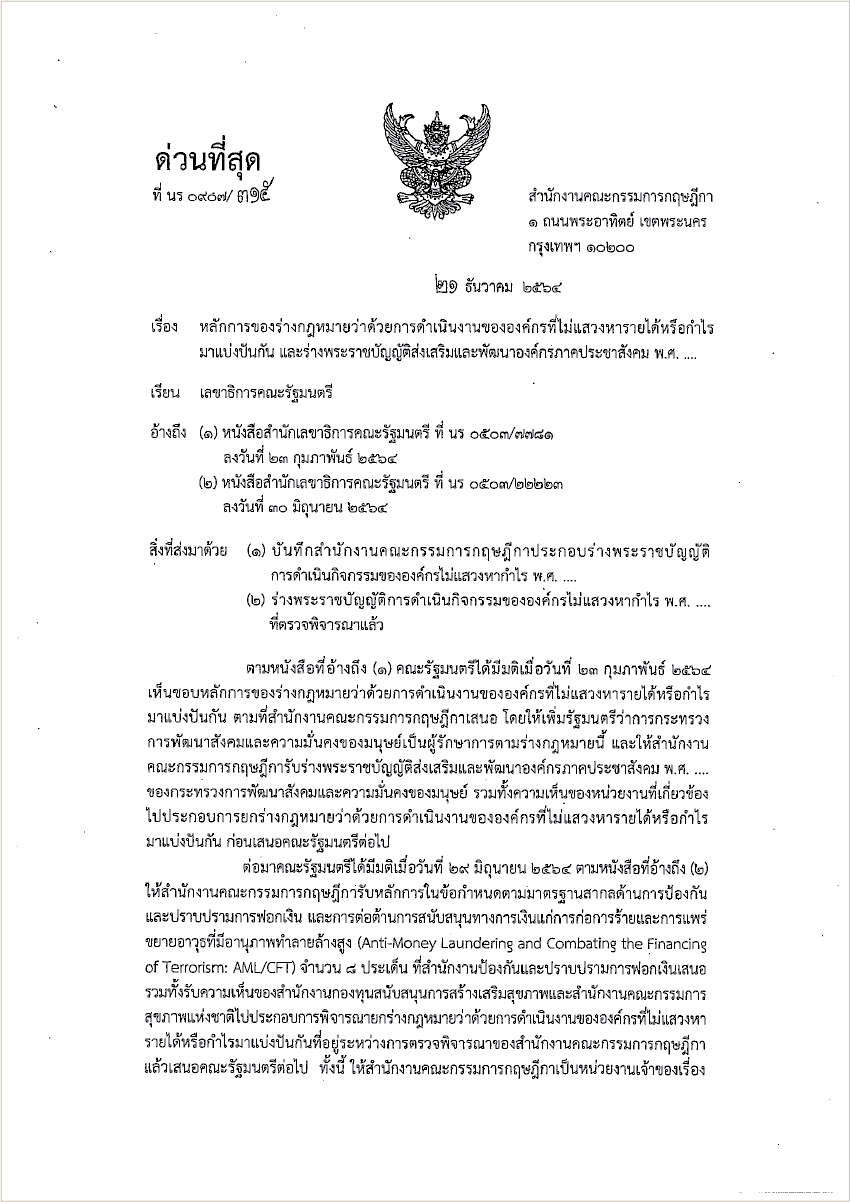 องค์กรไม่แสวงหาผลกำไร 1,867 แห่งในประเทศไทยคิดว่าร่างกฎหมายนี้เป็นเรื่องที่น่ากังวล