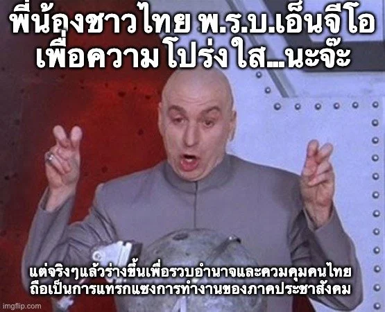 คุณอาจจะได้ยินมาว่า ร่างพ.ร.บ.เอ็นจีโอ (ร่างพระราชบัญญัติว่าด้วยการดำเนินงานขององค์กรที่ไม่แสวงหารายได้หรือกำไรมาแบ่งปันกัน) มีขึ้นเพื่อสร้างความโปร่งใสในภาคองค์กรไม่แสวงหาผลกำไร แต่เมื่อพิจารณาอย่างละเอียดแล้ว ร่าง พ.ร.บ. ฉบับนี้กลับไม่ได้มีเป้าหมายเช่นนั้น แนวทางนี้เป็นแนวทางที่รัฐบาลอำนาจนิยมมักใช้ในการทำให้ประชาชนเกิดความสับสน โดยวาระซ่อนเร้นที่แท้จริงของรัฐบาลต้องการควบคุมสิทธิเสรีภาพและการมีส่วนร่วมของประชาชนในขณะเดียวกัน ซึ่งจะส่งผลให้องค์กรไม่แสวงหากำไรไม่สามารถทำงานเพื่อสังคมในด้านสิทธิมนุษยชน ความยุติธรรมด้านสิ่งแวดล้อม และในประเด็นอื่นๆ ได้อย่างอิสระ